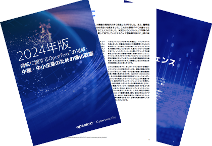 ご提供いただいた情報はオープンテキスト株式会社のプライバシーポリシーに沿い厳重に管理いたします。頂いた情報に基づき、オープンテキスト株式会社が委託した第三者より、新製品・サービス、キャンペーン情報、セミナー・イベント開催案内、その他有益であると判断する情報をご案内させて頂く場合がございます。また、情報は製品・サービスの開発・向上の参考とするため統計的に処理・分析し、その結果は個人が特定できないような状態で公表させて頂く場合がございます。どうぞご協力をお願い致します。
